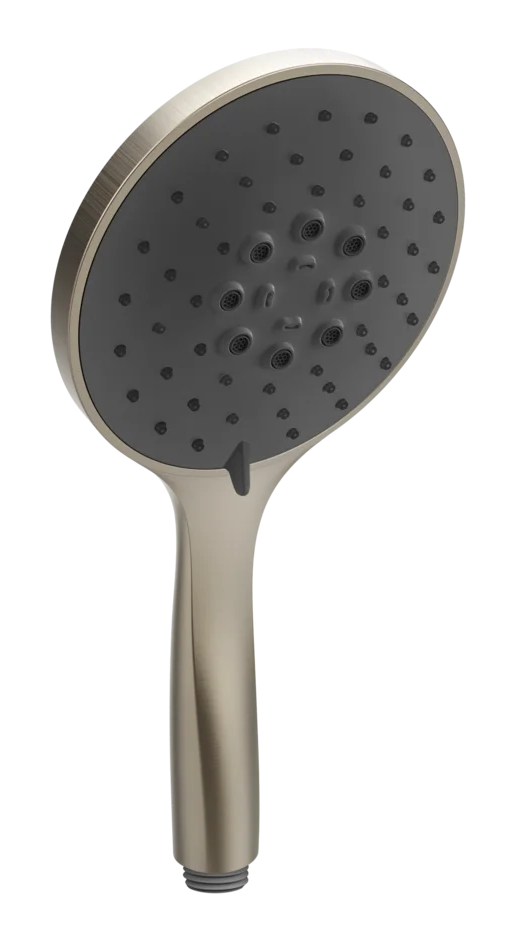 Ручная лейка Gessi Technical Accessories в отделке Finox Brushed Nickel оснащена чёрной вставкой и поддерживает три режима подачи воды, обеспечивая разнообразие ощущений во время душа. Диаметр 130 мм делает её удобной для комфортного охвата.