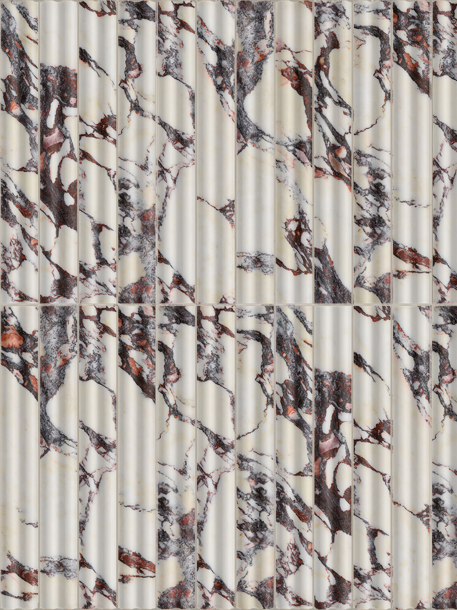 Sartoria Керамическая плитка Maximalista Calacatta Roman Regular Matt имеет размер 5x40 см и матовую поверхность, идеально подходящую для настенных покрытий. Она создает элегантные трехмерные драпировки в ванных комнатах, кухнях, коридорах и коммерческих помещениях. Уникальный дизайн создает уютную, теплую, классическую атмосферу, гармонично сочетаясь с натуральными материалами и относясь к классическому, современному и эклектичному стилям.
