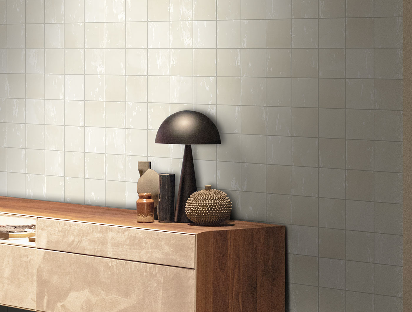 Формат 12,5×12,5 см, подсвеченный отраженным светом, усиливает цветовую изменчивость и выраженную материальную однородность, придавая стенам намеренно неровный вид. Глянцевая поверхность керамической плитки мягко отражает свет, создавая современный и изысканный визуальный эффект. Идеально подходит для облицовки стен в ванных комнатах, кухнях, коридорах, а также в коммерческих помещениях. Высокое качество материалов обеспечивает долговечность и простоту в уходе. Она создает уютную и теплую атмосферу, идеально сочетаясь с натуральными материалами, и придает интерьеру легкость и свежесть.