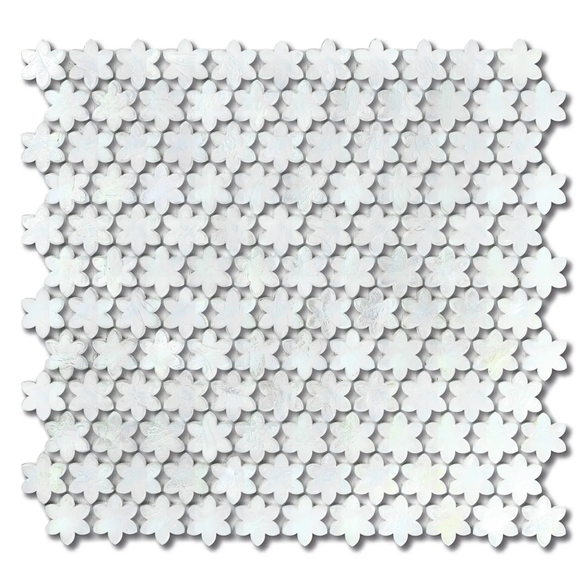 Смальтовая стеклянная мозаика Petites Fleurs - элегантная коллекция с элементами в форме шести лепестков. Включает 29 оттенков, среди которых выделяются блестящие, металлические и перламутровые варианты. Поверхность мозаичной плитки имеет немного неровную полированную текстуру, которая придает живость и органику материалу. Серия отлично подходит для современных и эклектичных интерьеров. Классический белый оттенок Anemone, символизирующий утонченность и гармонию, особенно красиво смотрится вместе с натуральными материалами в помещении.