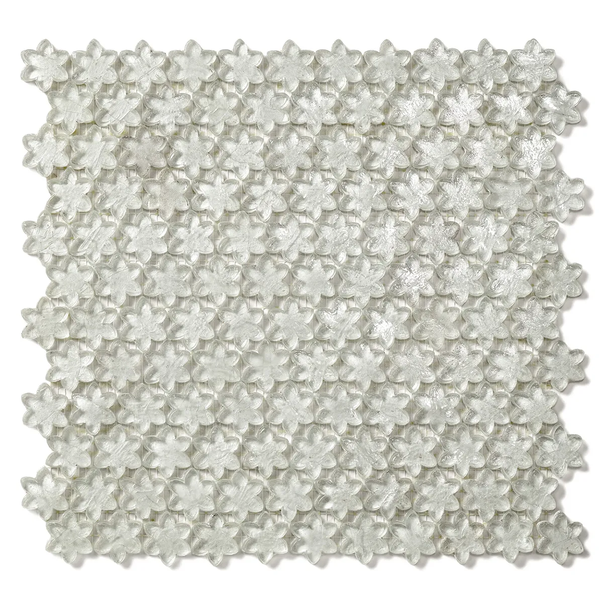 Petites Fleurs — это уникальная линия смальтовой стеклянной мозаики, созданная итальянскими мастерами бренда Sicis. Основным элементом выступает шестиугольный цветок, повторяющий форму природного растения. Всего предусмотрено 29 оттенков, среди которых присутствуют яркие, блестящие, перламутровые и металлические вариации. Оттенок Edelweiss характеризуется нежно-бежевым цветом с серым подтоном, обеспечивающим благородство и свежесть восприятия.