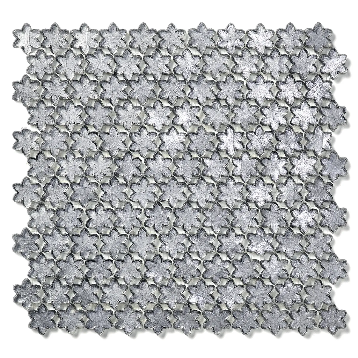 Модификация Petites Fleurs Tacca воплотила красоту холодного металлического блеска. Шестиугольники напоминают лепестки цветка, при этом поверхность каждого элемента имеет едва заметную зернистость, словно мастер оставил след своего труда. Тонкий серебристый металл покрывает стекло, делая интерьер живым и динамичным. Размер панелей 316×293 мм с удобной бумажной основой. Подходят для всех типов помещений: жилые квартиры, офисы, рестораны, медицинские учреждения, коридоры и лестницы. Универсальна для любых современных направлений дизайна.