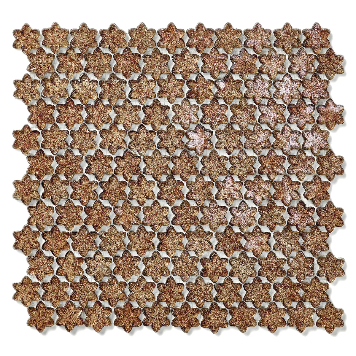 Petites Fleurs — коллекция смальтовой стеклянной мозаики, особенностью которой стали декоративные элементы в виде шестилистника. Ассортимент из 29 оттенков от классических блестящих до переливающихся металлических и загадочно мерцающих перламутровых тонов. Одной из наиболее примечательных расцветок стала Stapelia — глубокий насыщенный коричневый цвет, богатый и таинственный одновременно. Поверхность мозаичных элементов имеет едва заметную шероховатость, которая усиливает впечатление ручной работы.