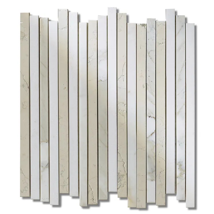 Мозаика Fibers Thick Dolomite — комбо трёх видов мрамора: Bianco Antico, Thassos и Calacatta. Каждая плитка представляет собой многослойную композицию, состоящую из горизонтальных и вертикальных полос. Такое исполнение придаёт дополнительную ценность и роскошь интерьеру. Общая глубина каждого элемента равна 10 мм, ширина — 15 мм. Мозаика смонтирована на высокопрочной стеклосетке, гарантируя надежность крепления. Ее можно применять как акцентную стену или полноценный фон в жилых и коммерческих пространствах.