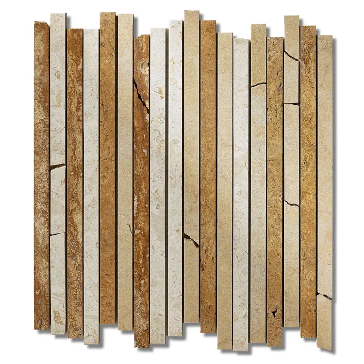 Мозаика Rayon восхищает сочетаемостью благородных золотых оттенков мрамора Византии и Древнего Рима. Разнообразие толщин (до 10 мм) и ширины (15 мм) создаёт впечатление живого полотна, богатого детализацией. Покрытие из специального состава защищает поверхность, сохраняя первоначальный блеск и прочность. Готовые плиты 288×331 мм подходят для акцентных поверхностей, гостиных, холлов и ванных комнат. Fibers Thick Rayon станет украшение стен в уютных отелях, авторских магазинах, небольших офисах или загородных рабочих кабинетов.