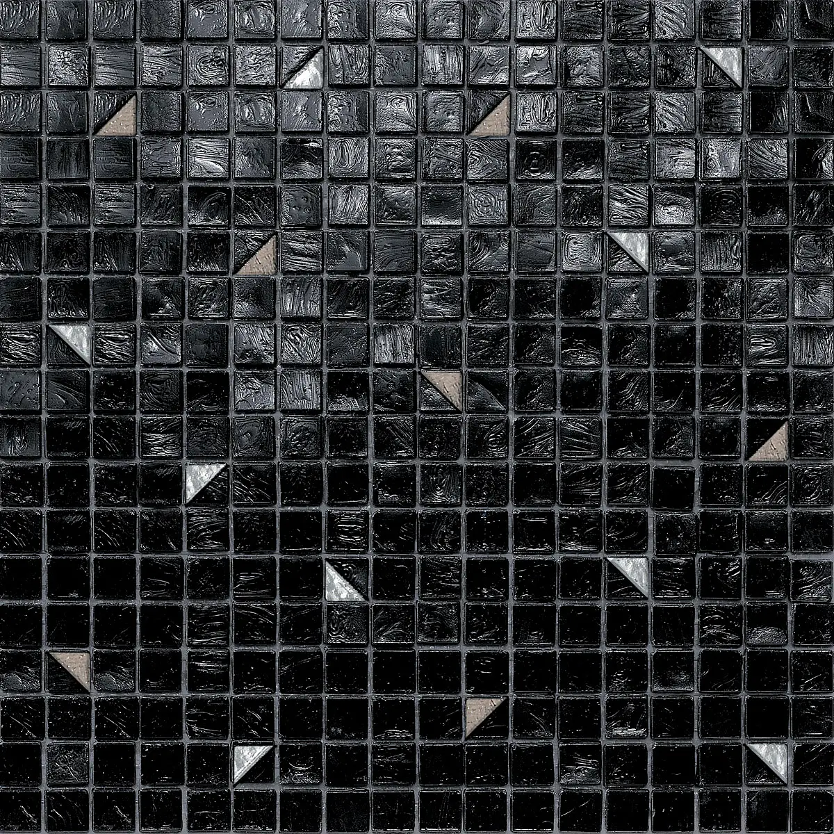 Стеклянная мозаика Coriandoli Cor 301, изготовленная из смальтового прозрачного стекла, представляет собой эталон элегантности и стиля. Квадратные элементы и треугольные вставки, искусно подобранные по оттенкам, создают завораживающий визуальный эффект. Черный оттенок поля эффектно контрастирует с вставками из алюминия и платины, придавая мозаике современное звучание. Размеры каждого элемента составляют 15х15 мм при номинальной толщине 4 мм. Межплиточный шов имеет размер 1,63 мм, а крепление на бумажной основе обеспечивает удобство и точность укладки. Мозаика предназначена для использования в жилых и коммерческих помещениях, оформленных в современных и эклектичных стилях.