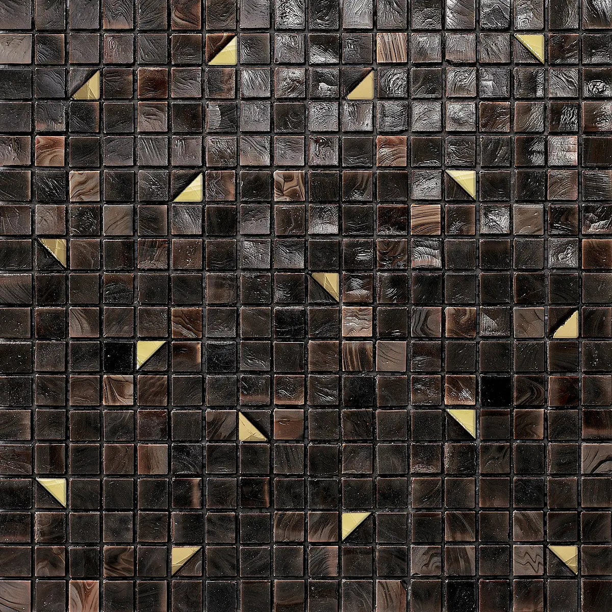 Мозаика из смальтового стекла Sicis Coriandoli – это смелое сочетание традиций и инноваций. Квадратные элементы, собранные из различных коллекций в уникальных пропорциях, дополнены прямоугольными и треугольными вставками разнообразных оттенков. Это открывает безграничные возможности для создания индивидуального дизайна. Мозаика идеально подходит для облицовки внутренних и наружных полов и стен, а также влажных помещений, благодаря своей высокой устойчивости к воздействию влаги и перепадам температур. Вариант Coriandoli Cor 302 особенно выделяется благодаря треугольным вставкам Kaki-Citrus на фоне Chestnut 4, что придает композиции неповторимую глубину и выразительность.