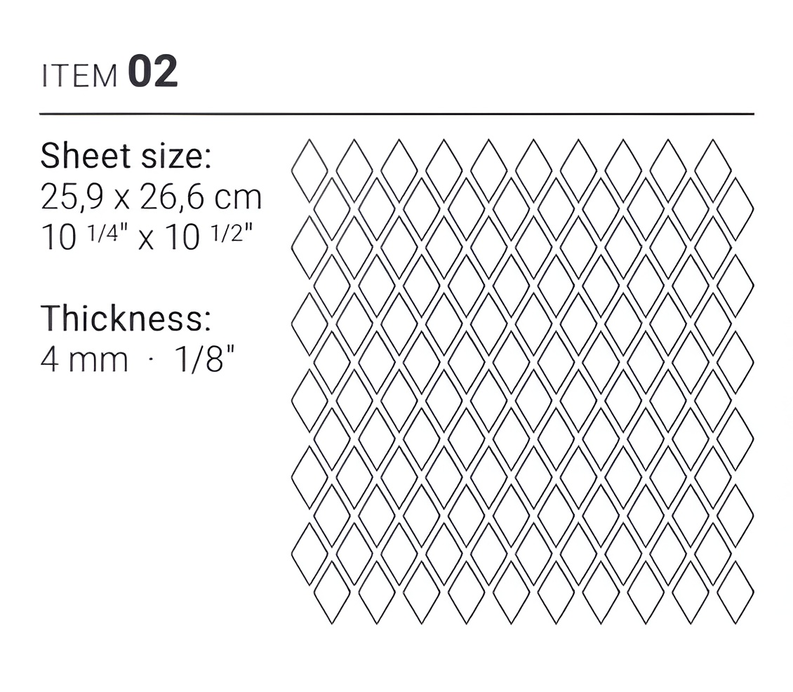 Представленная серия стекольной мозаики Diamond ITEM 02 Umbo воплощает теплый глубокий коричневый оттенок. Используемые компоненты — исключительно чистое муранское стекло высочайшего качества. Каждый элемент имеет форму ромба с плавными гранями, размеры которого составляют 23×40 мм. Панели состоят из множества небольших компонентов, уложенных вертикально, образуя гармоничный рисунок. Этот метод способствует равномерному распределению света и формированию красивого оптического эффекта. Уникальное покрытие обеспечивает идеальную гладкость и глянцевость, превращая каждую плитку в сверкающее отражение окружающей среды. Благодаря размеру панелей 259×266 мм и своей универсальности, данная продукция широко применяется для украшения фасадов зданий, внутренних поверхностей домов и квартир, ресторанов, кафе и бутиков.