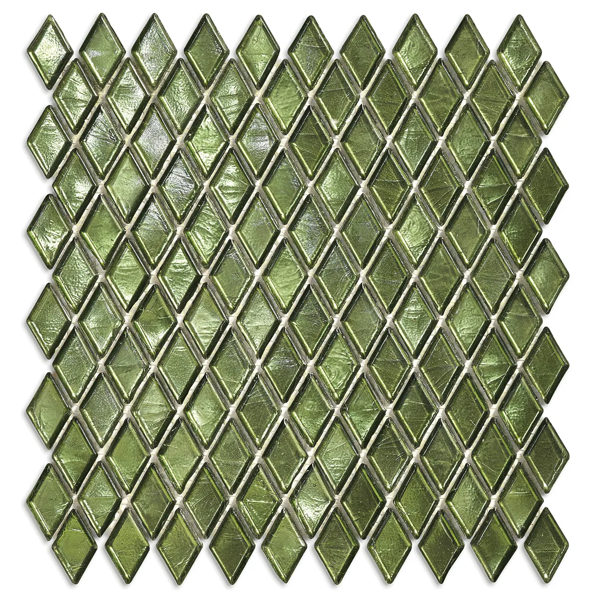 Травяной зелёный оттенок стеклянной мозаики изготовлен вручную из прозрачного муранского стекла. Каждая плитка размером 23×40 мм аккуратно вырезана в форме ромба с мягкими закруглёнными краями. Поверхность элементов идеально гладкая и блестящая, словно зеркало, отражающее окружающие предметы и свет, увеличивая пространство визуально. Такой материал станет прекрасным выбором для кухни, ванной комнаты, бассейна или другого места, где требуется элегантность и прочность одновременно.