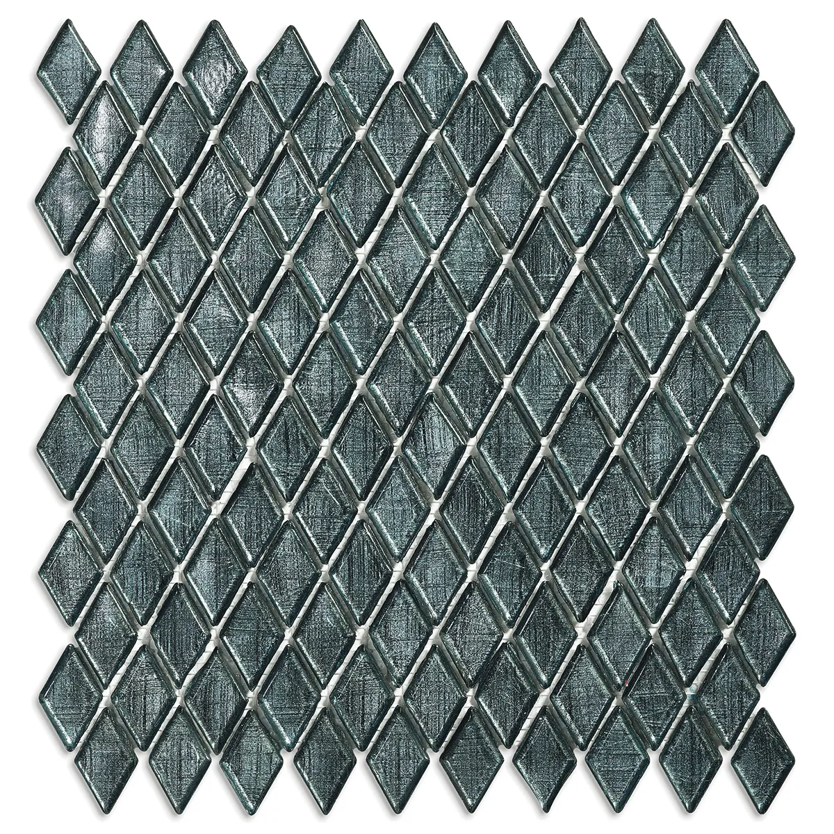 В эксклюзивной мозаике Sicis Diamond гармонично сочетаются традиции Венеции и современные технологии. Коллекция изготовлена из прозрачного муранского стекла, радует глаз богатой цветовой палитрой из 62 оригинальных оттенков и точной формой элементов. Форма осколков напоминает ромбы с чуть скруглёнными краями, которые создают плавные стыки между элементами. Мозаичная плитка здорово подчеркивает индивидуальность помещения. Особенный шарм придает модель ITEM T45 Palladium, обладающая серо-зелёным оттенком, наполненным теплом и спокойствием.