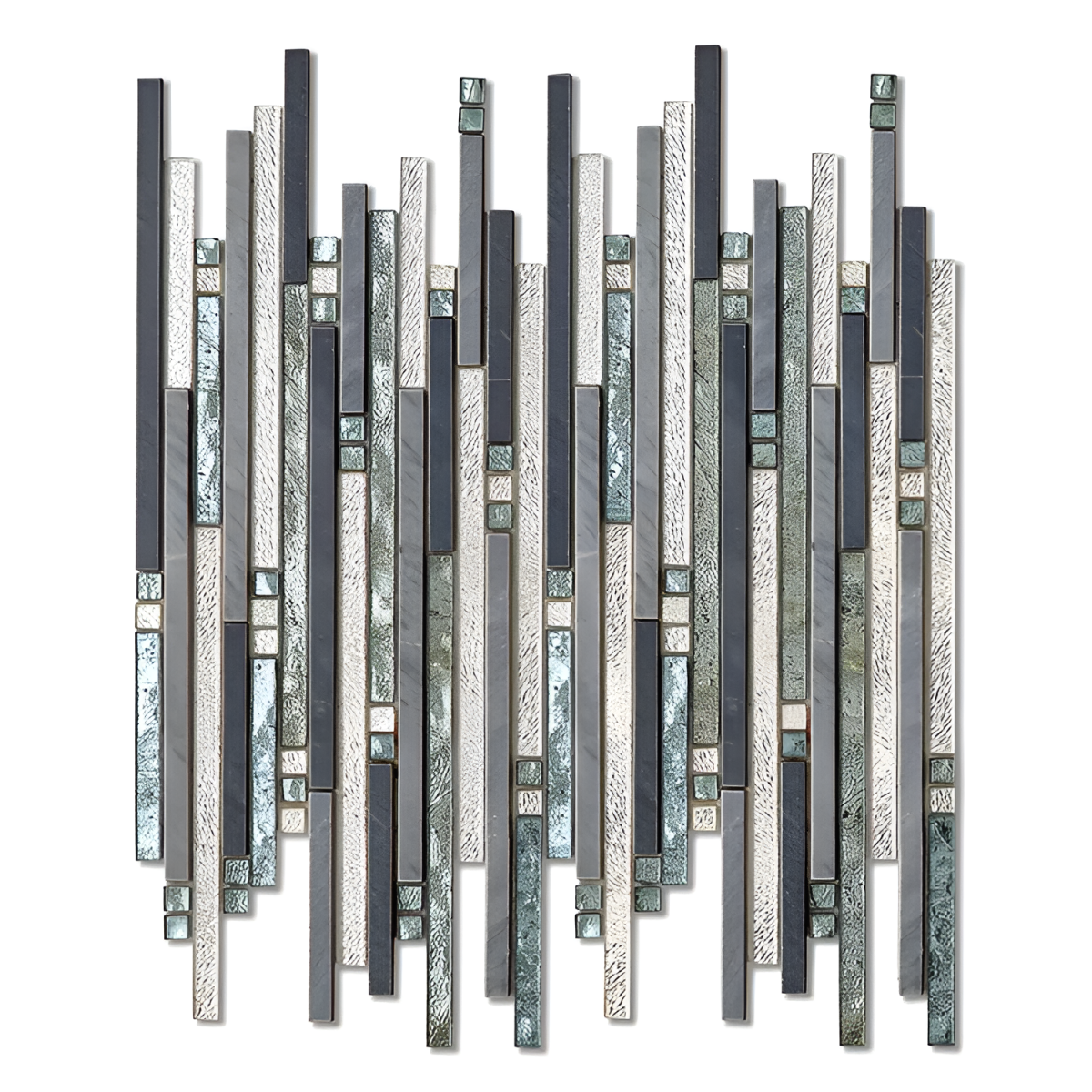 Декоративная мозаика Fibers Thin Grey выделяется глубокими и монохромными оттенками. В состав включены 29% Vis One Colibrì, 26% Hermes Colibrì, 25% Bardiglietto Marble, 20% Bardiglio Marble. Серия выполнена из комбинированных материалов — стеклянной пасты, эмалевых покрытий и мрамора, что придает ей живой и естественный внешний вид. Поочередно расположенные полосы отражают красоту стекляруса, мягко спускающегося по стене и напоминающего водопад. Добавляет особое настроение современным, винтажным и ар-деко интерьерам, удачно выделяя отдельные зоны в частных домах, общественных заведениях и коммерческих объектах.