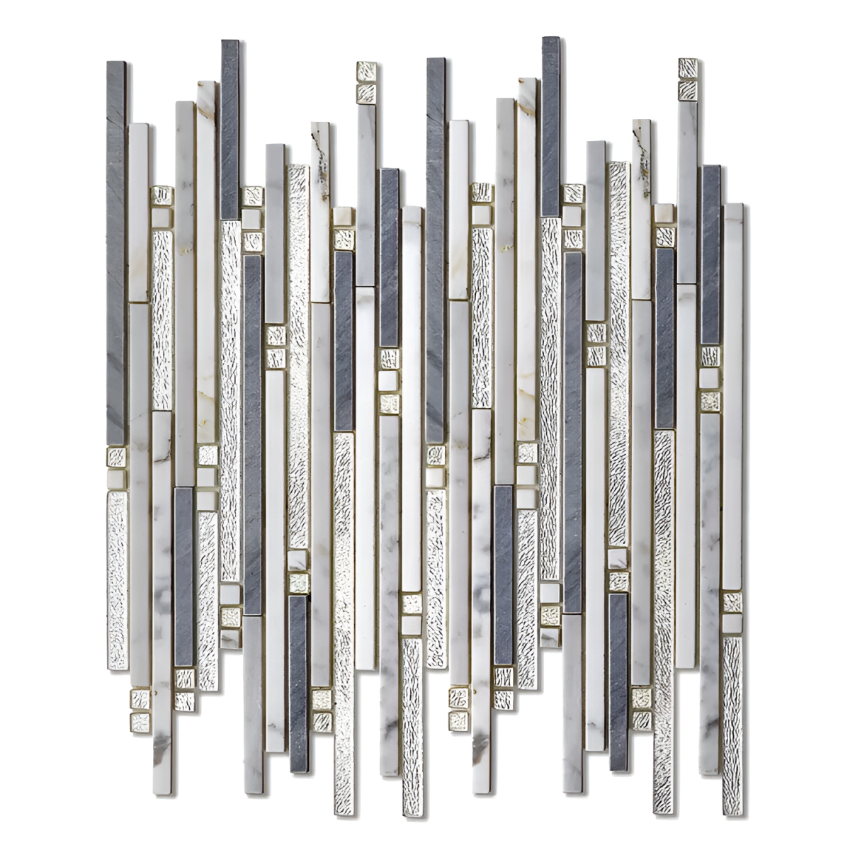 Создавая эксклюзивный ансамбль, Fibers Thin Ice объединяет мощь мрамора и яркую выразительность стекла. Красота композитов из Statuario Marble, Vis One Colibrì, Carrara Marble и Bardiglietto Marble заставляет задуматься о движении стекляруса, придает помещению прохладу и особый характер. Каждый модуль размером 286×325 мм монтирован на крепкой сетке, которая гарантирует простоту сборки и надежность структуры. Такой декор подойдет как для современного минимализма, так и для экстравагантного эклектичного интерьера. Не требует дополнительных украшений, т.к. состоит из самодостаточных элементов декора.