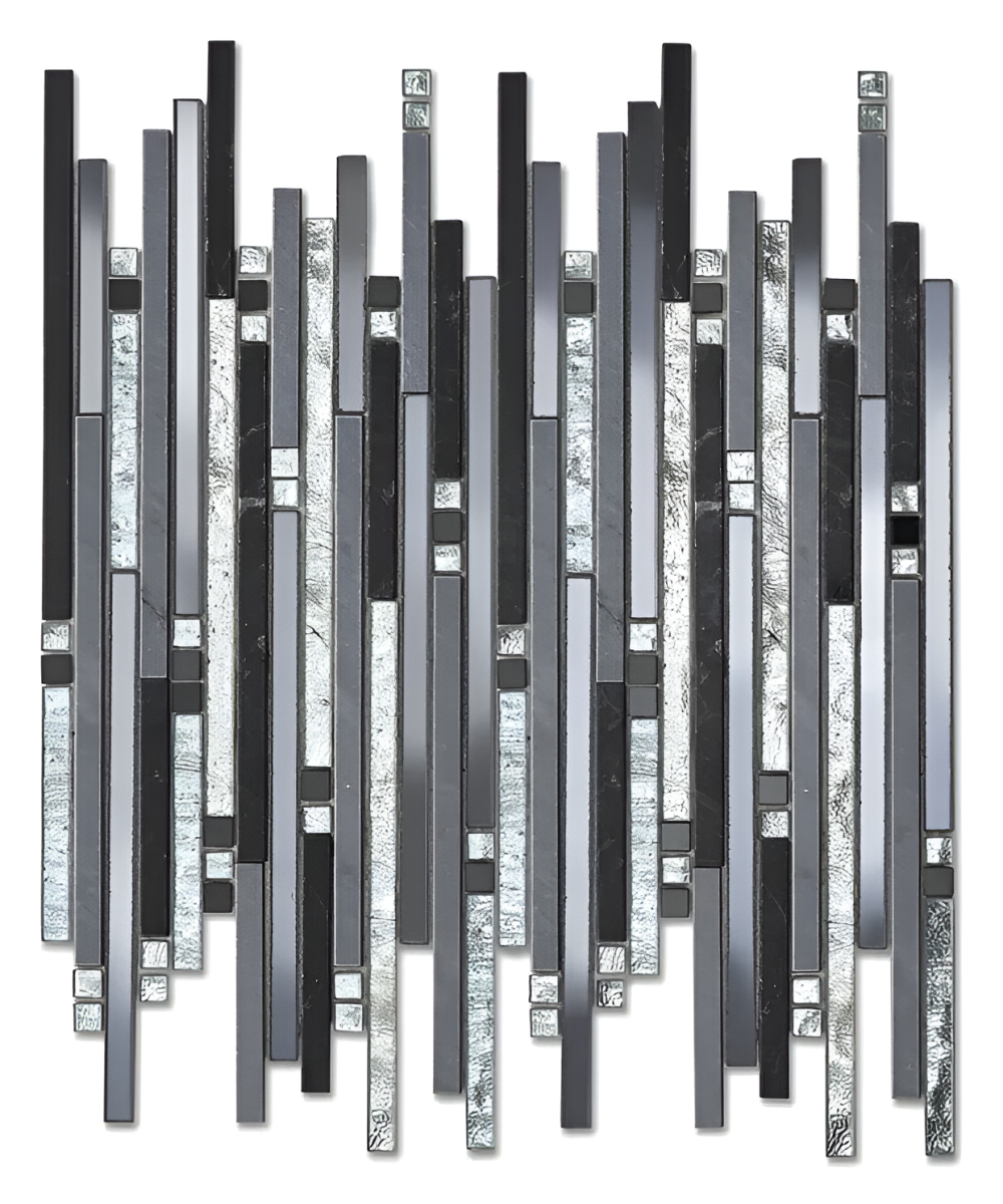 Итальянская коллекция стеклянной мозаики Fibers Thin совмещает в себе привлекательность материалов и выразительные линии. Классические квадраты сочетаются с вытянутыми прямоугольниками, образуя живописный геометрический узор, похожий на водопад. Природная элегантность этой серии достигается благодаря использованию благородных материалов: стекла, зеркала, платины, золота и мрамора. Есть два типа панелей: тонкие плиты 3 мм в 9 оттенках и объемные элементы 9 мм в 19 цветах. Такой декор оптимален для настенных акцентов в гостиной, кухне или офисе.