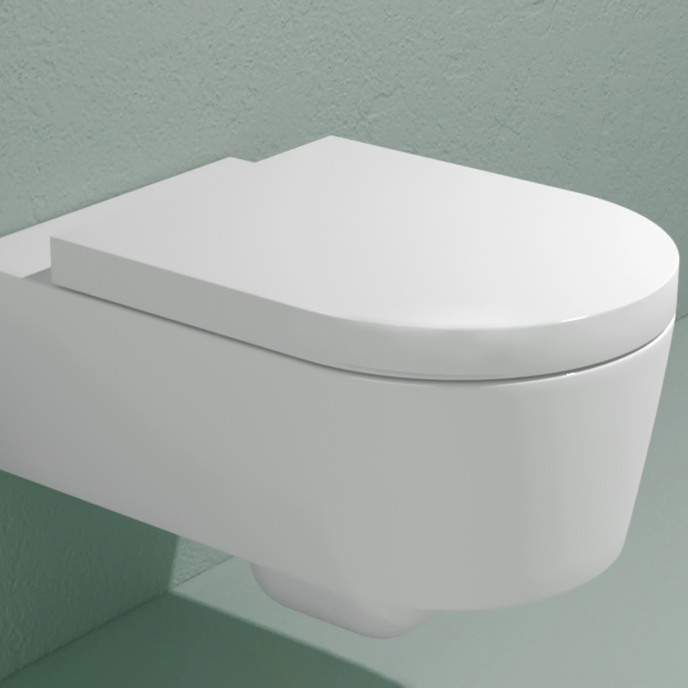 Механизм soft-closing обеспечивает плавное опускание крышки без резких звуков и ударов, добавляя комфорта в повседневном использовании. Белая глянцевая поверхность выглядит свежо и опрятно, хорошо сочетается с керамикой и другими элементами санузла.