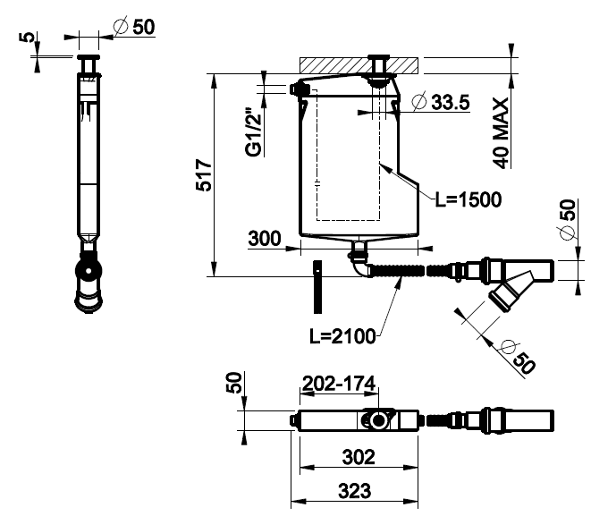 Размеры конструкции составляют 517х323х50 мм, что делает её удобной для монтажа и последующей эксплуатации. Система разработана специально для совместимости с ручными душами Gessi, обеспечивая надёжность и практичность при ежедневном использовании.