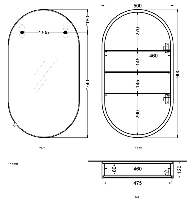 Cielo I Catini шкаф 500х120х900 мм, зеркальный, овальный, с крашенным корпусом, цвет Matt Black (матовый чёрный)