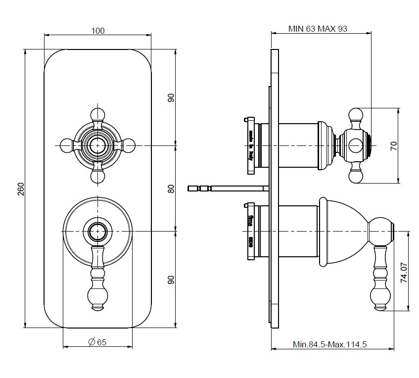Модель Carlo Frattini оснащена переключателем на 2/3 источника, что обеспечивает удобное распределение потоков воды. Конструкция рассчитана на настенный монтаж и совместима с надежными скрытыми механизмами.