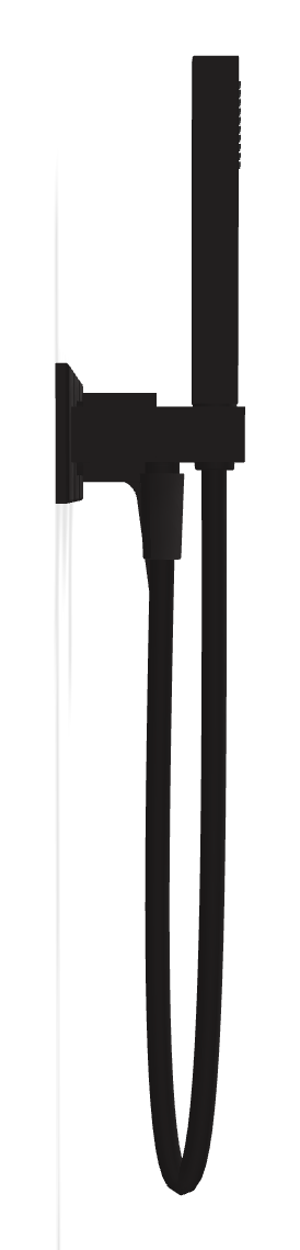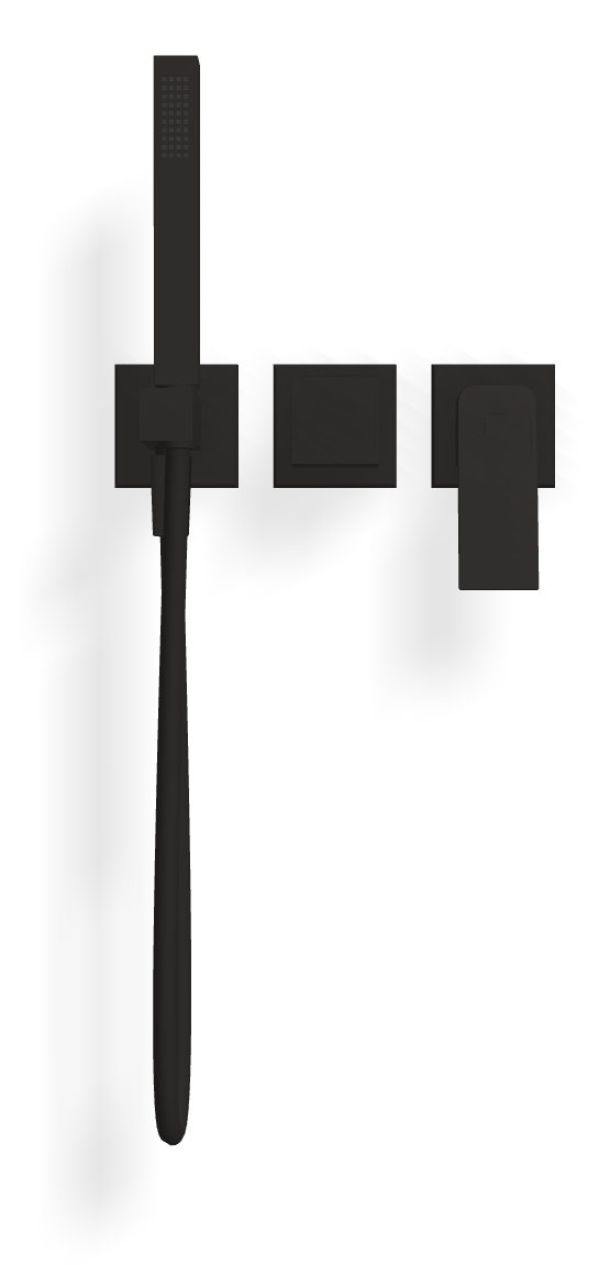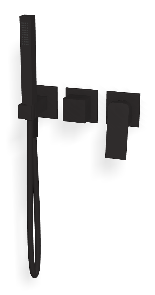 Ручной душ удобен в ежедневном использовании, а шланг хромалюкс обладает гибкостью и долговечностью. Внешняя часть формирует минималистичный вид и позволяет интегрировать систему в интерьер без перегруженности деталями, сохраняя чёткую геометрию. Чёрный матовый оттенок подчеркивает современный характер модели и органично сочетается со стеклом, бетоном, камнем и металлом, сохраняя выразительность при длительной эксплуатации.