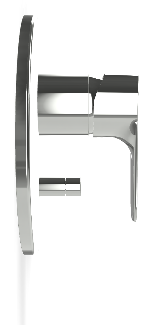 Модель оснащена переключателем на два потребителя, что позволяет удобно управлять различными источниками воды в системе, например верхним и ручным душем. Смеситель используется как внешняя часть встроенного решения и устанавливается в сочетании с внутренним механизмом скрытого монтажа, что помогает сохранить упорядоченный внешний вид пространства.