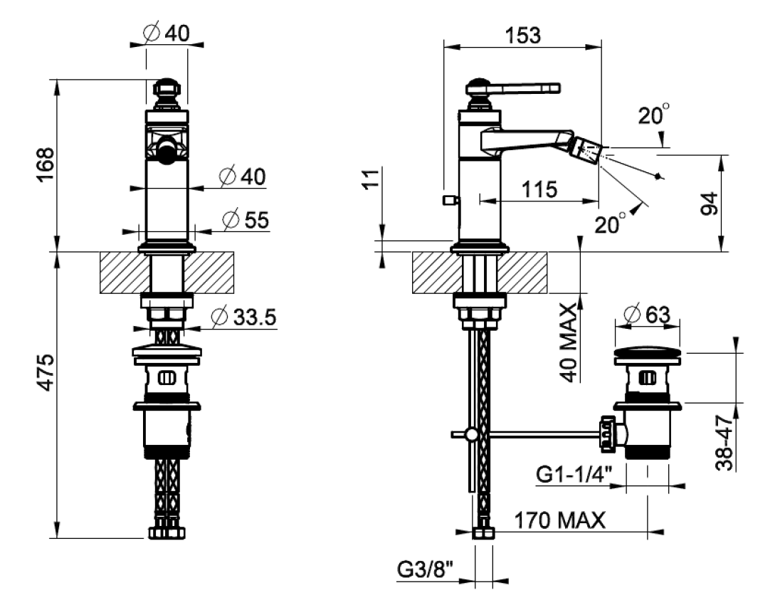 Модель оснащена донным клапаном и рассчитана на удобное подключение к стандартным коммуникациям. Смеситель Gessi Venti20 обеспечивает комфортное использование биде и совместим с другими элементами коллекции, что облегчает создание единой композиции в ванной.