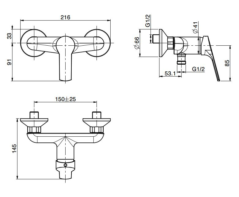 Глубина корпуса 145 мм позволяет аккуратно интегрировать смеситель в душевое пространство без излишнего выступа, сохраняя сбалансированные пропорции и комфорт при использовании. Модель поставляется без ручного душа, что даёт возможность гибко подобрать душевые аксессуары в соответствии с выбранной концепцией интерьера и индивидуальными требованиями проекта.