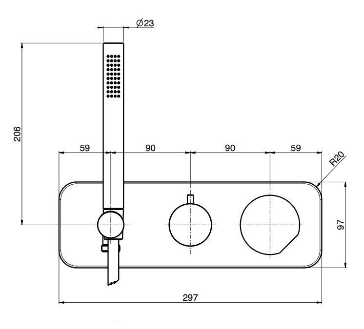 Смеситель для душа Carlo Frattini SO выполнен в современной минималистичной стилистике и рассчитан на встраиваемый монтаж, что позволяет сохранить визуальную чистоту и архитектурную целостность душевой зоны. Внешняя часть шириной 297 мм формирует выразительную горизонталь и подчёркивает строгую геометрию коллекции SO. Отсутствие ручек усиливает ощущение цельности и аккуратности композиции.
