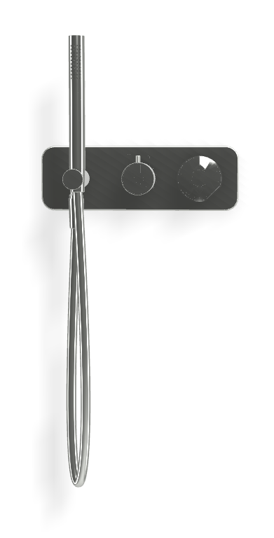 Модель оснащена переключателем на 2 потребителя, что обеспечивает удобное распределение потоков воды между элементами душевой системы. В комплект входят ручной душ и гибкий шланг длиной 1500 мм, позволяющие гибко адаптировать сценарии использования в повседневной эксплуатации. Все технические элементы скрыты в стене, на поверхности остаётся только функционально выверенная внешняя часть.