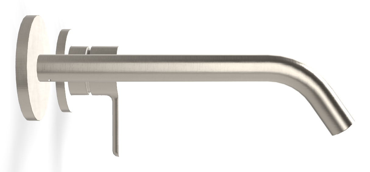 Отделка в цвете никель брашированный придаёт смесителю благородный металлический оттенок и приятную тактильную фактуру. Излив длиной 200 мм оптимален для большинства раковин, а продуманная конструкция настенного монтажа облегчает уход за поверхностью и сохраняет чистоту вокруг умывальника.