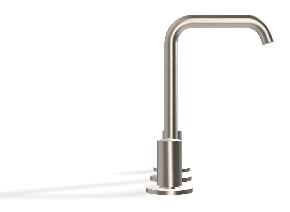 В комплектацию входит донный клапан Click-Clack и два гибких шланга, что позволяет сразу сформировать функциональное и продуманное решение. Поворотный излив расширяет сценарии работы и упрощает уход за чашей раковины. Брашированный никель создаёт мягкий матовый эффект без бликов и гармонично сочетается с натуральным камнем, бетоном, светлой керамикой и тёплыми нейтральными отделками.