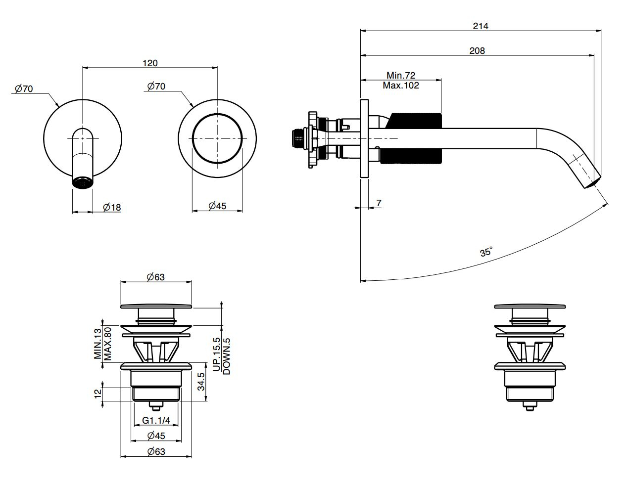 Конструкция предусматривает установку на стену и комплектуется донным клапаном Click-Clack. Внешняя часть отличается плавной линией излива и эргономичной ручкой, что делает использование удобным.