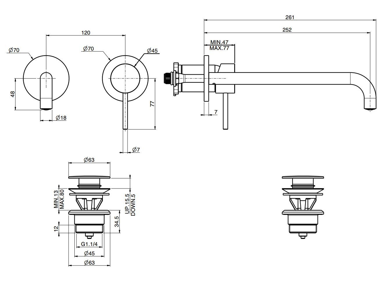 Изделие поставляется как внешняя часть и устанавливается в сочетании с внутренним механизмом. Донный клапан Click-Clack позволяет управлять сливом воды лёгким нажатием, поддерживая чистоту линий и минималистичный внешний вид умывальной зоны без дополнительных элементов управления.