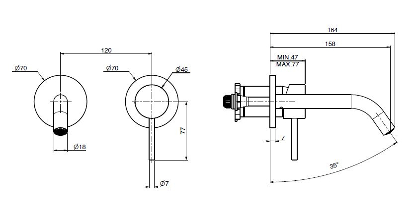 Модель оснащена донным клапаном Click-Clack, который обеспечивает удобное управление сливом и аккуратную интеграцию с раковиной. Встраиваемое исполнение позволяет скрыть технические элементы в стене, сохраняя целостность композиции и подчёркивая минималистичный характер серии Spillo Up. Такое решение особенно актуально для современных интерьеров с акцентом на порядок и архитектурную выразительность.