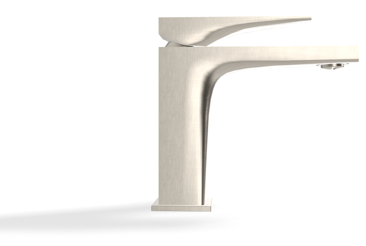 Поверхность в никеле брашированном остается спокойной на свету, создавая эффект мягкого металла, который не перетягивает внимание на себя, но уверенно поддерживает выбранную палитру. Смеситель для раковины легко сочетать с лаконичной керамикой, камнем, однотонной плиткой, а также с матовыми аксессуарами и душевыми элементами близкого оттенка.