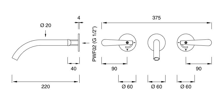 Настенный смеситель для раковины с тремя отверстиями и поворотным изливом длиной 220 мм отличается лаконичной формой и выразительной отделкой в цвете Black Diamond сатинированный. Двухвентильное управление придаёт модели классическую эстетику и удобство использования.