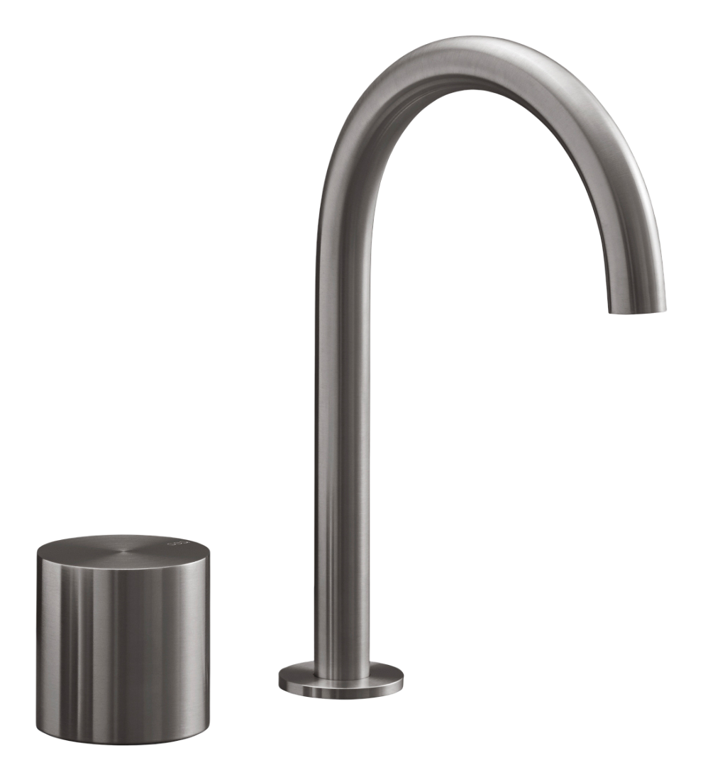 Смеситель для раковины в отделке сатинированное светлое золото имеет прогрессивное управление и устанавливается на два отверстия. Высокий поворотный излив 245 мм обеспечивает удобство при использовании, а изысканный оттенок придаёт изделию выразительный характер.
