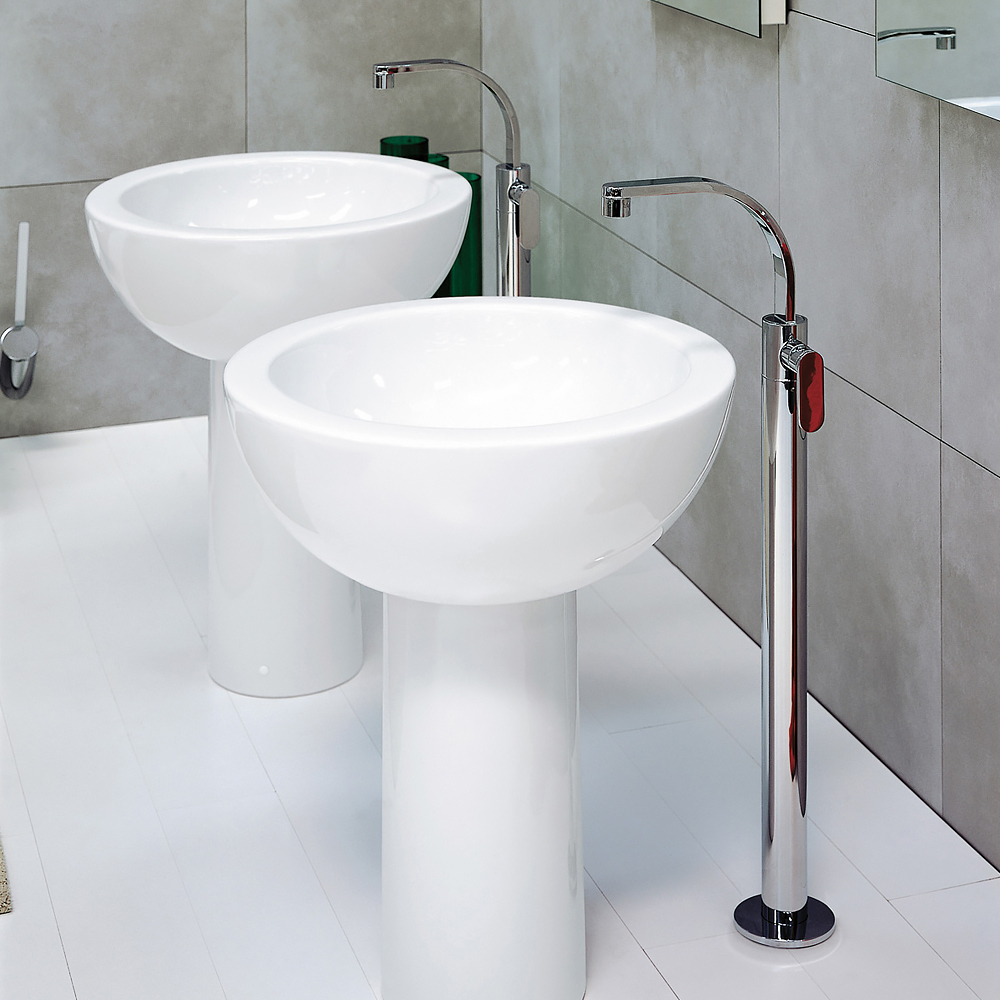 Смеситель для раковины Flaminia One свободно стоящий отличается выразительной вертикальной формой и впечатляющей высотой 108 см. Такое решение выглядит особенно эффектно рядом с крупными чашами, создавая композицию, которая становится акцентом помещения. Благодаря продуманным пропорциям и вылету излива 26 см, струя направлена мягко и точно, а высокая конструкция обеспечивает удобство в повседневном использовании.