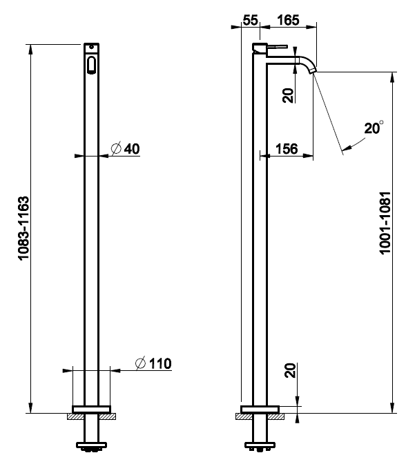 Смеситель для раковины Gessi 316 напольный, высотой 1163 мм в цвете Matte Black - выразительный акцент для просторных ванных комнат и зон с отдельно стоящей раковиной. Чёткая вертикаль корпуса и минималистичная геометрия создают впечатление архитектурной колонны, а полностью скрытая подводка поддерживает ощущение чистого, организованного пространств