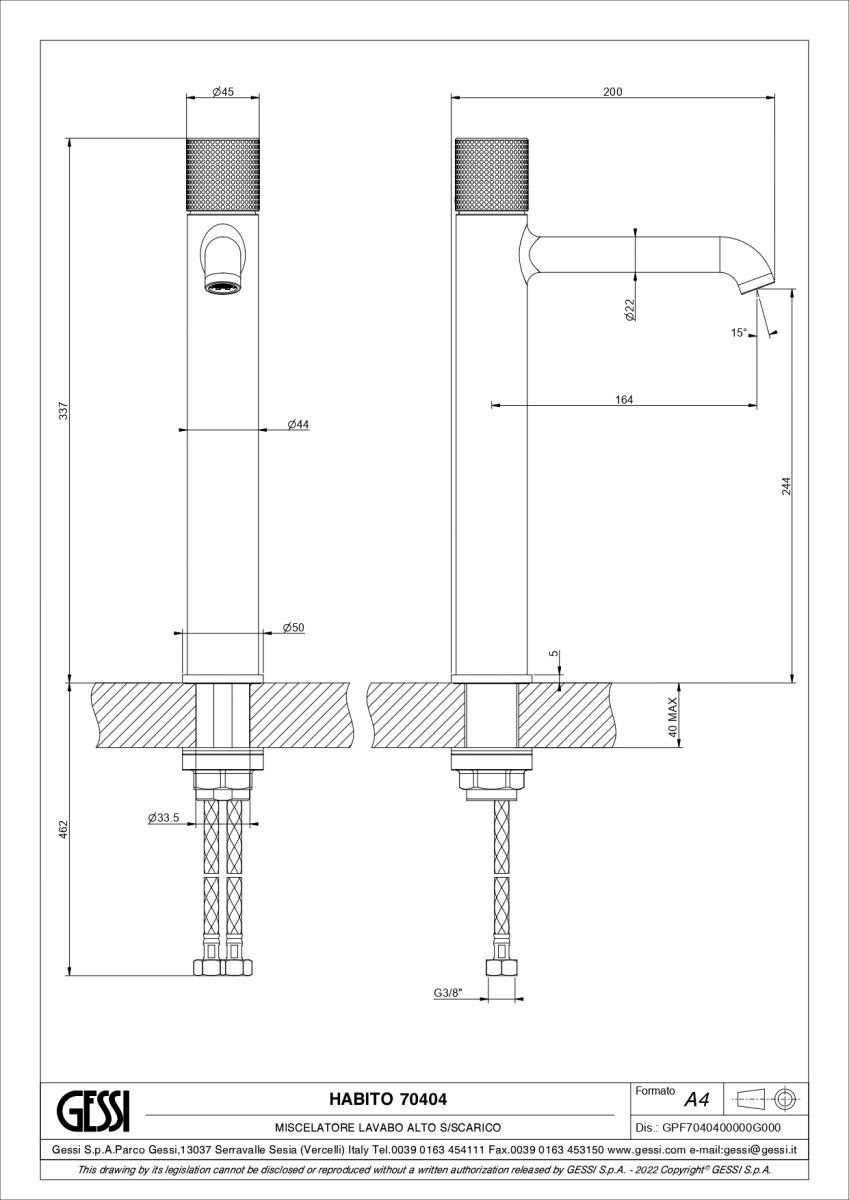 Дизайн изделия Gessi Habito Cesello предусматривает установку с соединительными шлангами, что облегчает монтаж и обеспечивает надежное соединение с водопроводной системой. Отсутствие донного клапана представляет его более компактным и эстетичным — весь механизм скрыт внутри стены, оставляя внешний вид максимально минималистичным и аккуратным. Высота излива позволяет удобно мыть руки и большие предметы, а продуманная конструкция гарантирует стабильную подачу воды без протечек и лишних неудобств. Такой вариант отлично подойдет для современных интерьеров, где важна гармония формы и функции.