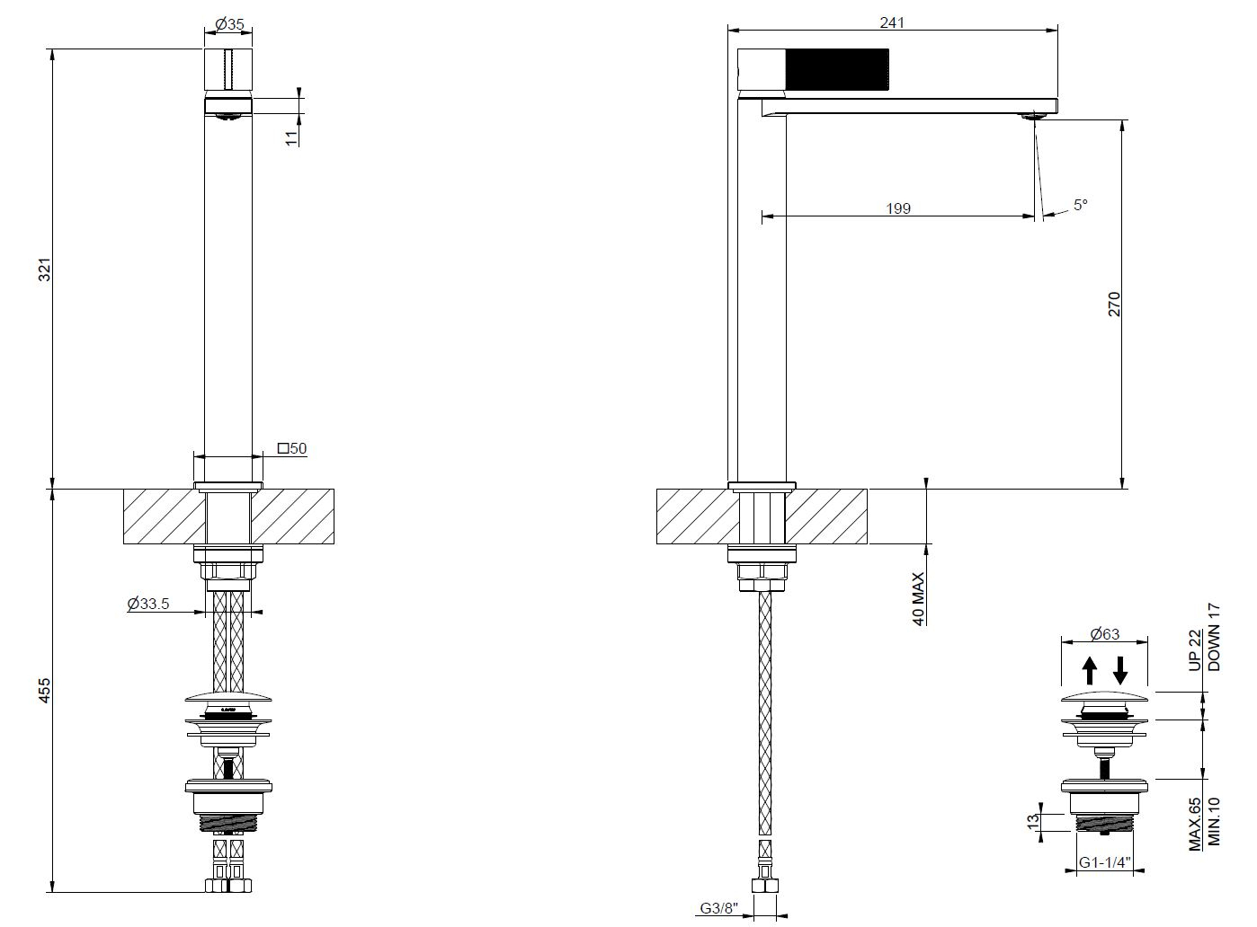 Смеситель для раковины Gessi Inverso в отделке Brass PVD отличается выразительной геометрией и благородным оттенком полированной латуни. Высота 321 мм делает модель подходящей для высоких и накладных раковин.