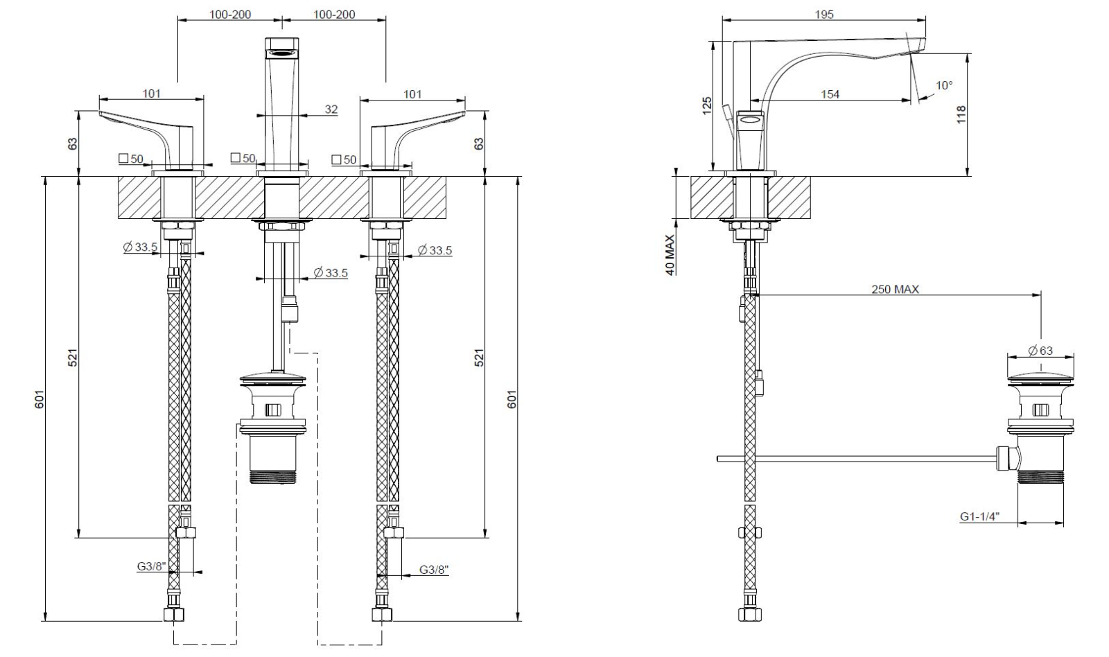 Модель оснащена изливом длиной 195 мм и поставляется с донным клапаном. Конструкция обеспечивает практичное решение для установки на раковины различной глубины, при этом сохраняя визуальную лёгкость.