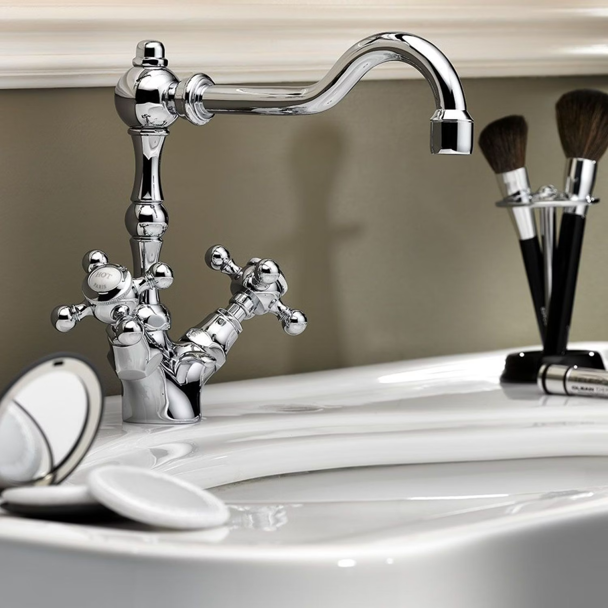 Смеситель для раковины THG 1900 — гармоничное сочетание оригинального дизайна и надежности. Двухвентильная конструкция обеспечивает точную регулировку температуры и расхода воды, создавая комфортную и предсказуемую настройку под каждую задачу. А классическая хромированная отделка своим блеском дополняет любые интерьерные решения. Материалы высокого качества гарантируют долговечность и надёжность в ежедневной эксплуатации, а уникальный дизайн гармонично вписывается как в компактные, так и в просторные ванные комнаты. Смеситель для раковины THG 1900 станет практичным выбором для ценителей точной сборки и аккуратной эстетики.