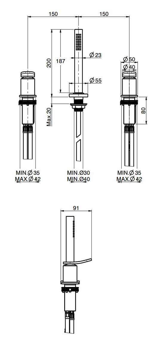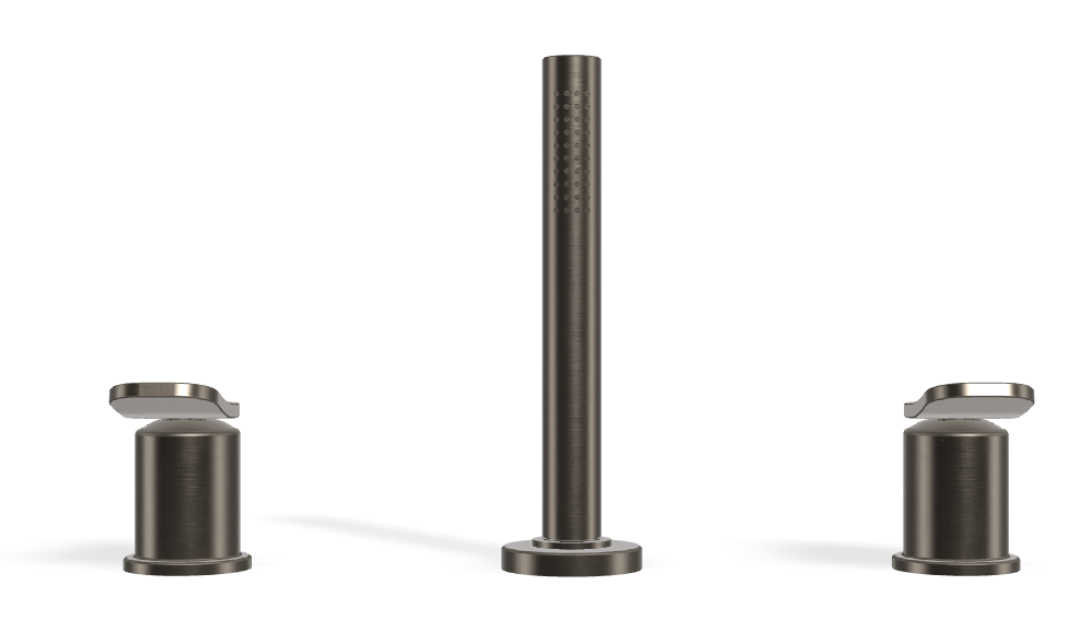 Смеситель для ванны Carlo Frattini Flo в брашированном черном хроме подчеркивает линию борта ванны и становится функциональным центром зоны купания. Модель устанавливается на горизонтальную поверхность и оснащена вытяжным ручным душем с нейлоновым шлангом длиной 1500 мм, что позволяет сделать процедуру более гибкой и удобной. Отсутствие излива дает свободу в планировании подачи воды через скрытые решения или наполнение ванны переливом, оставляя визуальный облик лаконичным и аккуратным.