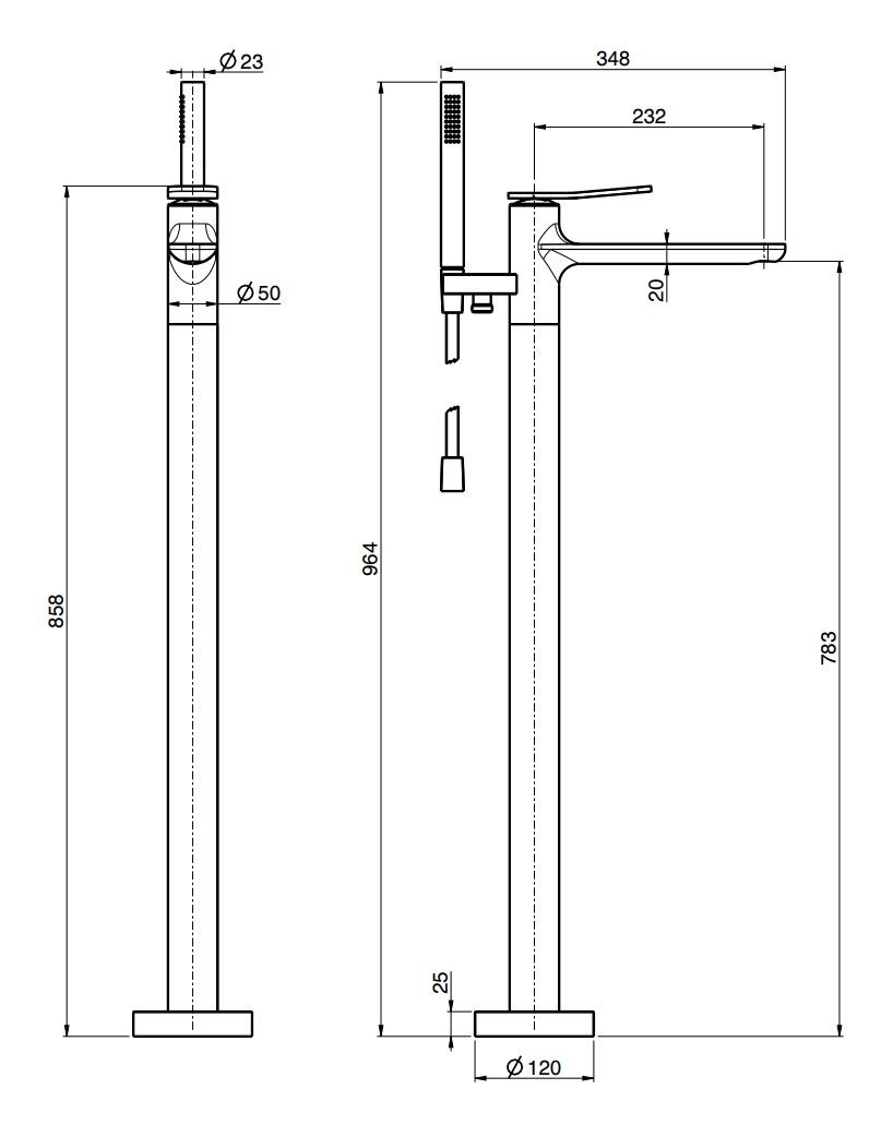 Смеситель для ванны Carlo Frattini Flo в хромовой отделке подойдёт для интерьеров, где важна чистая геометрия и визуальная лёгкость. Напольный формат позволяет расположить сантехнику рядом со свободностоящей ванной, не привязывая композицию к стенам и сохраняя пространственное дыхание. Смеситель для ванны имеет высоту 783 мм от пола до аэратора. Ручной душ дополняет основной функционал, а гибкий шланг хромалюкс длиной 1500 мм помогает свободно работать с направленной струёй.