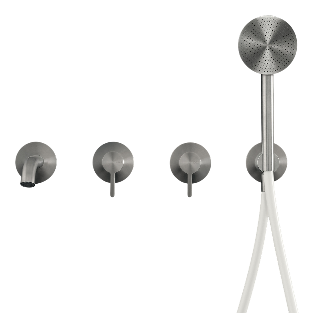 Узнать ценуСмеситель для ванны Cea Design Innovo в отделке Black Diamond Satin выполнен в элегантном минималистичном стиле. Конструкция рассчитана на установку в 4 отверстия и объединяет излив, два смесителя и ручной душ Ø 80 мм с гибким шлангом в цвете Black, что подчеркивает гармонию дизайна.
