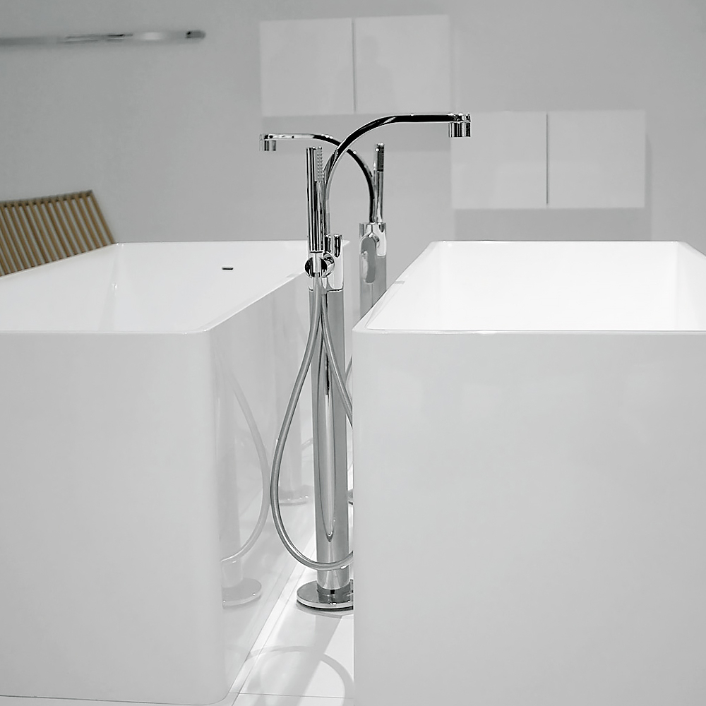 Смеситель для ванны Flaminia One станет центральным элементом зоны купания. Его конструкция включает излив, переключатель и душевой набор с ручной лейкой и гибким шлангом, что делает использование удобным. В комплект также входит скрытая часть, обеспечивающая аккуратный монтаж и лаконичный вид.