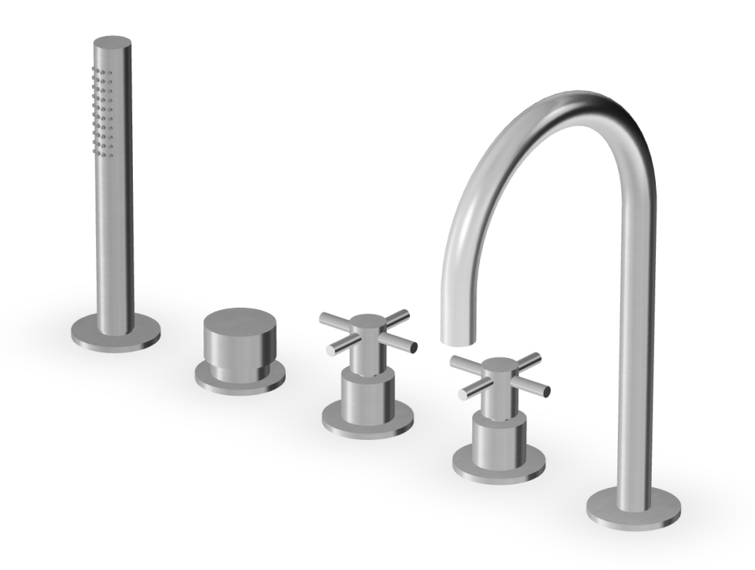 Изделие изготовлено из нержавеющей стали AISI 316L с отделкой в виде брашированной поверхности. Вертикальное рифление и тактильная насечка создают сдержанный визуальный эффект, обеспечивая защиту от следов воды и пальцев. Фиксированный излив оптимальной длины удобен для наполнения ванны, а вытяжной душ с удлиненным шлангом расширяет возможности использования.