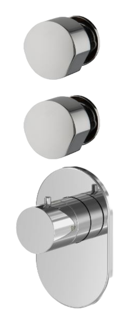 Хром формирует гладкую зеркальную поверхность, которая усиливает ощущение света и подчёркивает геометрию изделия. Такое покрытие хорошо сочетается с керамикой, стеклом, полированным камнем и другими элементами в классической металлической палитре. Нейтральный блеск делает термостат универсальным решением для современных и минималистичных интерьеров.