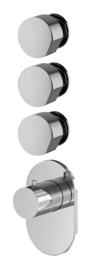 Термостат Carlo Frattini SO в чёрном матовом цвете подойдёт для современных интерьеров с акцентом на чистую геометрию и минимализм. Модель выполнена без ручек и оснащена тремя запорными вентилями, что позволяет удобно распределять потоки между несколькими потребителями, сохраняя при этом строгий и лаконичный внешний вид. Ширина 100 мм делает внешнюю часть компактной, а возможность горизонтальной и вертикальной установки упрощает интеграцию в разные планировки душевой или ванной зоны.