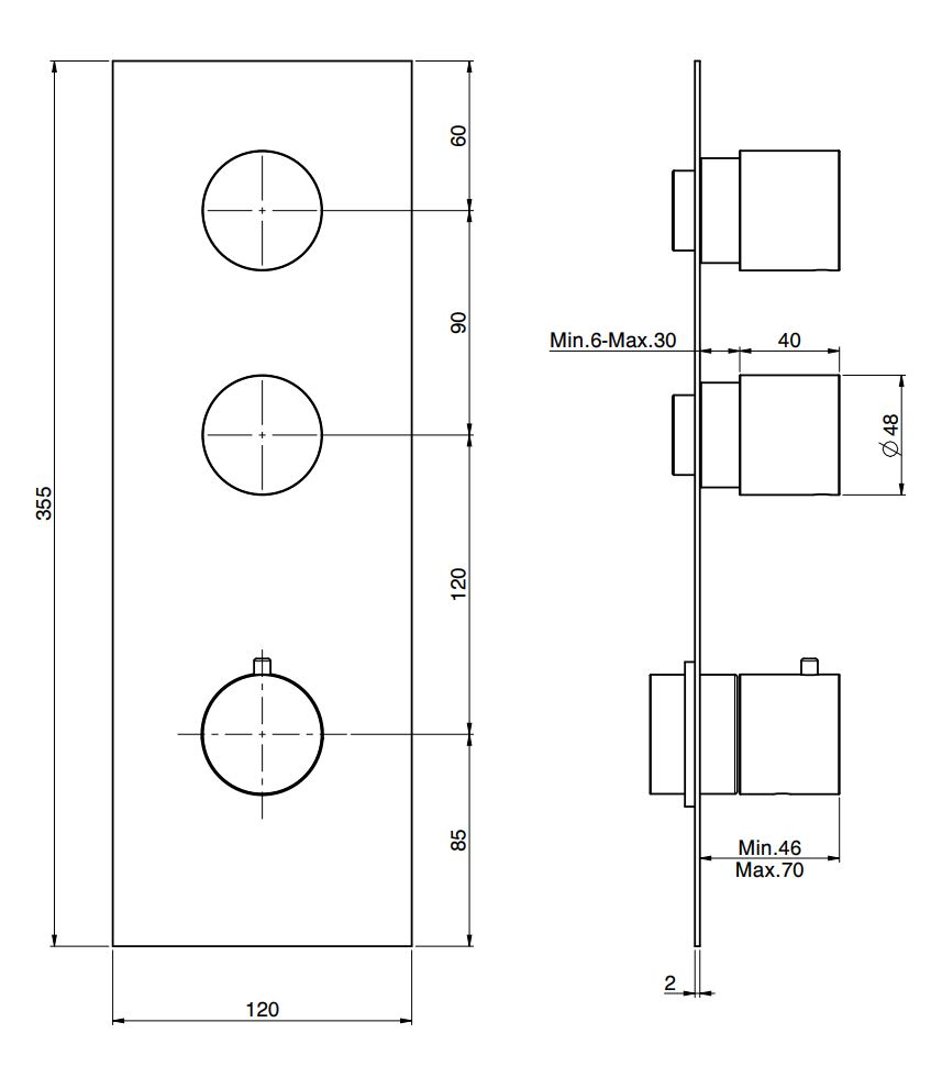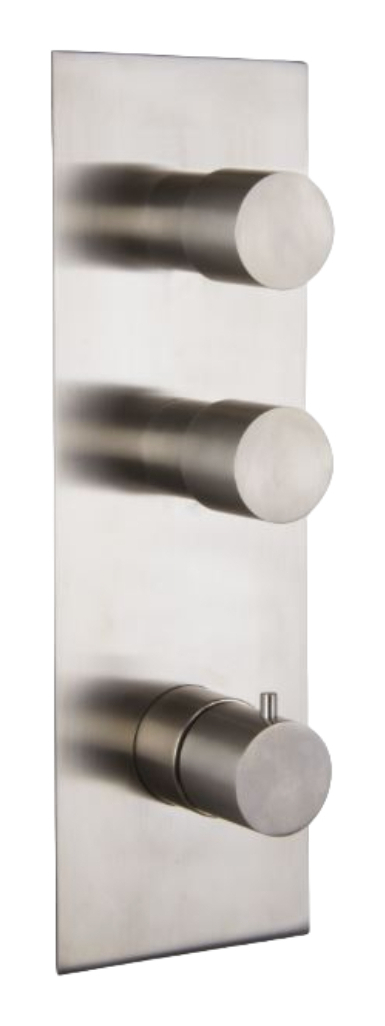 Термостат Carlo Frattini Spillo Steel с двумя запорными вентилями предназначен для душевых пространств, где требуется раздельное управление двумя источниками воды, например верхним и ручным душем. Конструкция внешней части предусматривает как горизонтальную, так и вертикальную установку, что упрощает интеграцию в проекты с различной планировкой и дизайнерским замыслом.