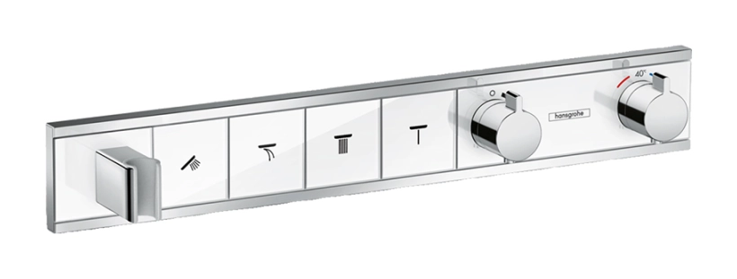 Термостат для душа Hansgrohe RainSelect - высокотехнологичное сантехническое оборудование для создания вашего уникального душевого пространства. Сочетающий в себе стильный дизайн и передовые технологии термостат Hansgrohe RainSelect предназначен для одновременного использования до четырех различных выходных отверстий, что позволяет каждому члену семьи настроить душ под свои предпочтения. А универсальный цвет хром с белым идеально впишется в любой дизайн интерьера душевой зоны.